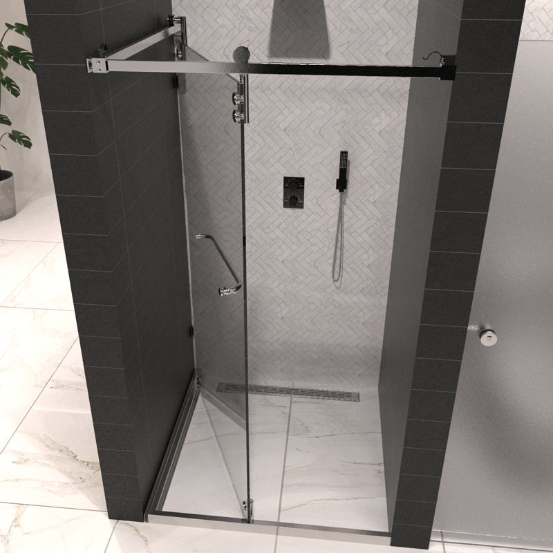 Cancel de baño para vidrio templado de 8 a 10mm de espesor con altura máxima recomendada de 2.00m de altura. Nuestro cancel corredizo se adapta perfectamente a cualquier diseño de baño. Su versatilidad garantiza una integración perfecta en tu espacio.